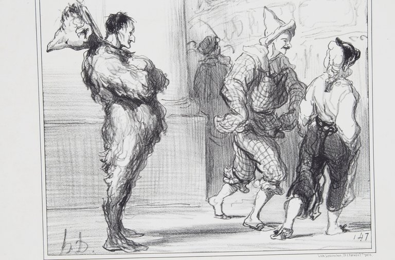 Lithographie originale en noir et blanc - Au bal masqué - Me reconnais-tu, maintenant?.
