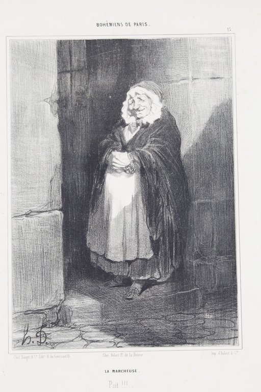 Lithographie originale en noir et blanc - Bohémiens de Paris - La marcheuse