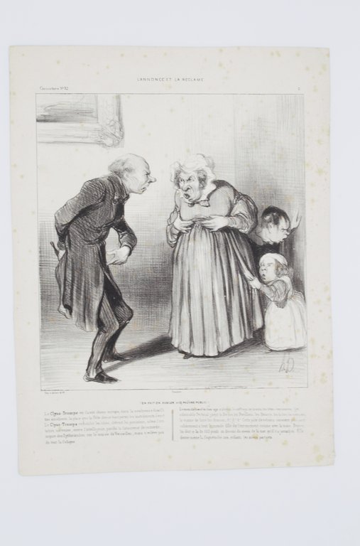 Lithographie originale en noir et blanc - L'annonce et la reclame - En fait-on avaler a ce pauvre public!