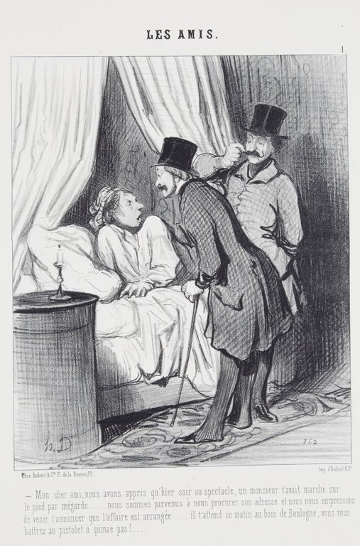 Lithographie originale en noir et blanc - Les amis - Mon cher ami, nous avons appris qu'hier soir au spectacle,.