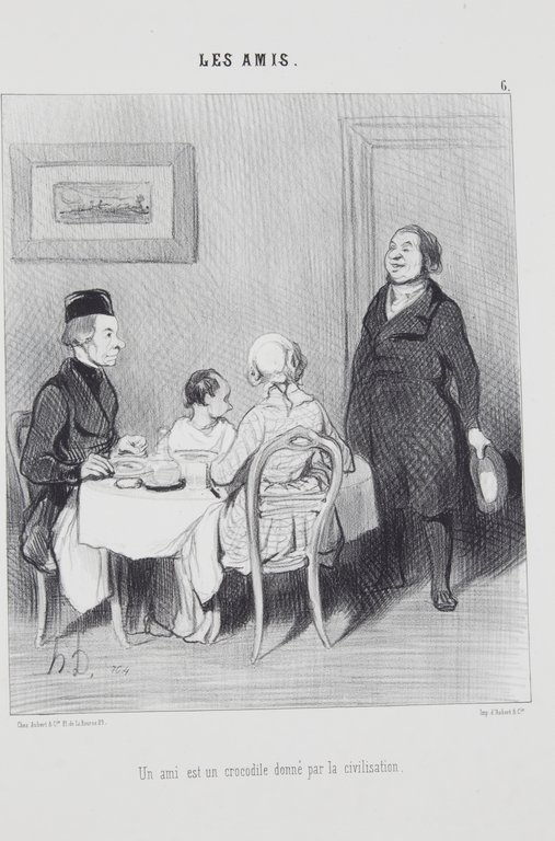 Lithographie originale en noir et blanc - Les amis - Un ami est un crocodile donné par la civilisation