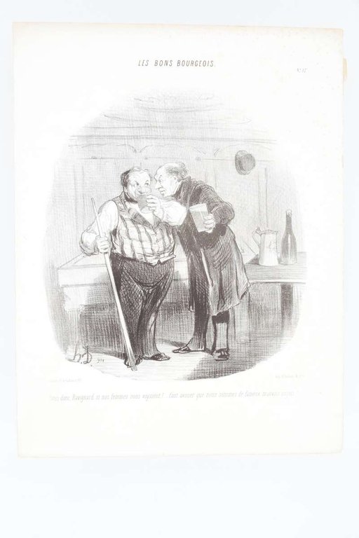 Lithographie originale en noir et blanc - Les Bons bourgeois - Dites donc; Ravignard, si nos femmes nous voyaient!.faut avouer que nous sommes de fameux nouveaux sujets!