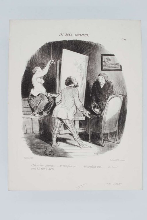 Lithographie originale en noir et blanc - Les Bons bourgeois - Entrez donc Monsieur.ne vous gênez pas.c'est un tableau vivant.absolument comme à la Porte St Martin.