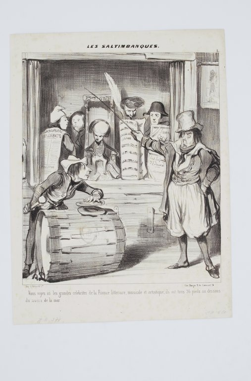 Lithographie originale en noir et blanc - Les saltimbanques - Vous voyez ici les grandes célébrités de la France littéraire.