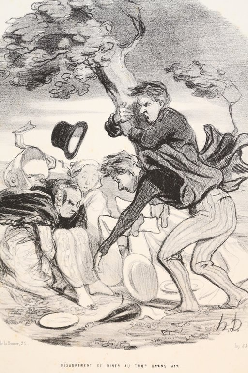 Lithographie originale en noir et blanc - Pastorales - Désagrément de dîner au trop grand air