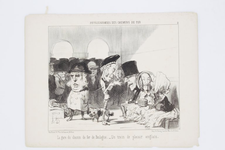 Lithographie originale en noir et blanc - Physionomies des chemins de fer - La gare du chemin de fer de Boulogne.