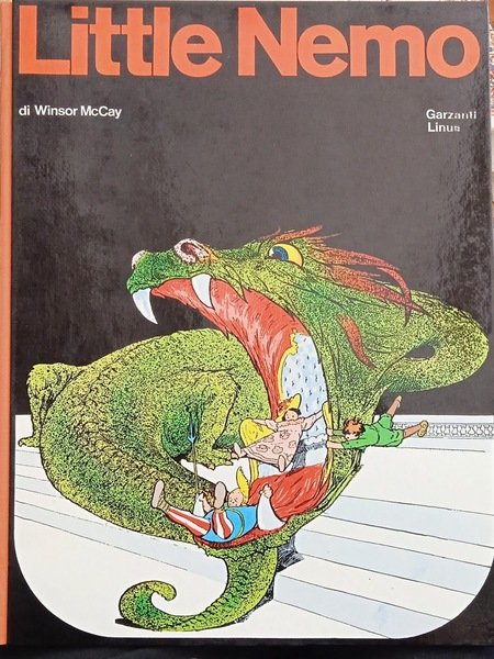 PRIMA EDIZIONE Garzanti Linus con prefazione di Oreste del Buono. Little Nemo (Little Nemo in Slumberland, tradotto in Italia dapprima come Bubi nel Paese del dormiveglia e successivamente indicato come Little Nemo) è un personaggio dei fumetti protagonista di una serie di tavole domenicali auto-conclusive realizzate dal disegnatore statunitense Winsor McCay e pubblicate sulle pagine del supplemento domenicale del New York Herald dal 15 ottobre 1905 al 23 luglio 1911 e in seguito sul New York American di William Hearst dal 1911 al 1913 diventando In the Land of Wonderful Dreams (Nella terra dei sogni straordinari); successivamente McCay realizzerà le ultime tavole di Nemo tra il 1924 e il 1927 nuovamente per il New York Herald. Little Nemo è stato diffuso in Italia dal Corriere dei Piccoli col nome di Bubi (la serie fu rinominata Bubi nel paese del dormiveglia), che lo pubblicò dal 1912 al 1914. Ricompare ancora nel 1935 sulle pagine del settimanale Topolino della Nerbini. Il volume presente è una edizione cronologica del 1969 con tavole dal 15 ottobre del 1905 al 25 dicembre del 1910. Cartonato. Pp. 263. Pari al nuovo