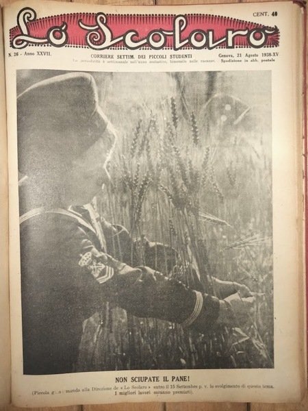 Lo Scolaro. Corriere settimanale dei piccoli studenti. La periodicità è settimanale nell'anno scolastico, bimensile nelle vacanze. Direttore G. B. Balestra.