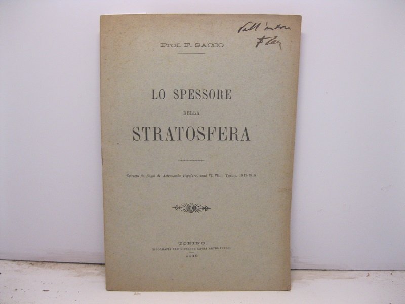 Lo spessore della stratosfera. Estratto da Saggi di Astronomia Popolare, anni VII-VIII, 1917-1918