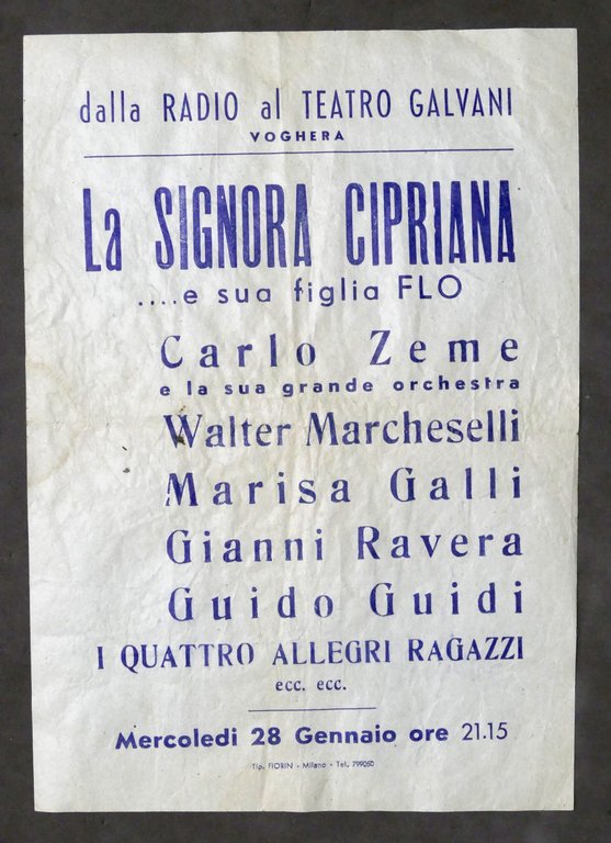 Locandina Teatro Galvani - Voghera - Spettacolo la Signora Cipriana - anni '50