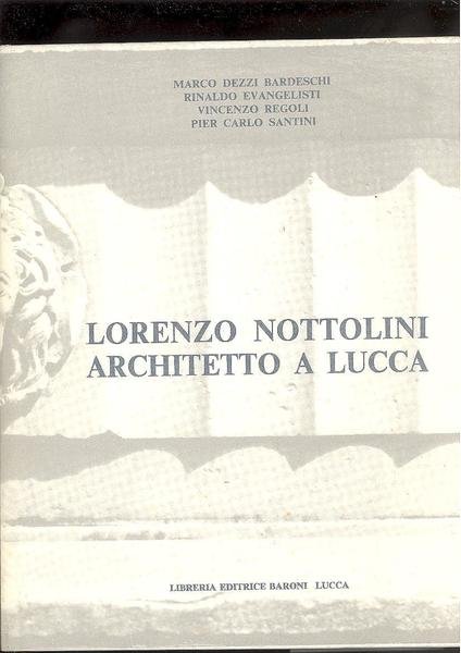 IN 8°gr. ( cm.28X22 ),pp:VIII,362,INDICI. TAVV. X a col.f.t., 448 FIGURE in b/n.<BR>LEGATURA TELATA RIGIDA+SOVRACOPERTINA ILLUSTRATA CON TITOLO+VELINA DI<BR>PROTEZIONE E COFANETTO. NELLA PARTE FINALE, INVENTARIO DEI DISEGNI D'ARCHITETTURA DI LORENZO NOTTOLINI ( CAPANNORI 1787 - LUCCA 1851 ). ARCHITETTO E INGEGNERE ITALIANO ATTIVO SOPRATTUTTO A LUCCA PER I SUOI LAVORI SULLA REGIMAZIONE IDRICA. A LUI SI DEVE LA SISTEMAZIONE ATTUALE DELLA CELELEBRE PIAZZA DELL'ANFITEATRO. OTTIMA CONSERVAZIONE. ID, 478