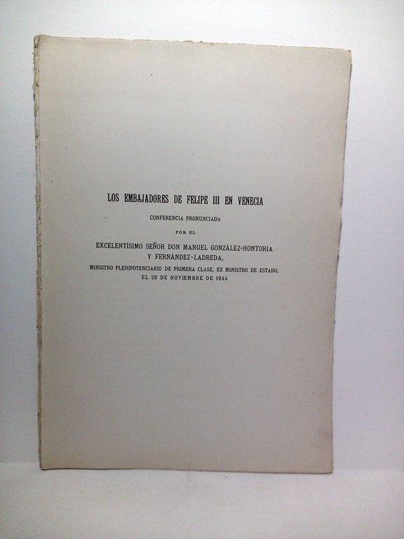 Los embajadores de Felipe III en Venecia. (Conferencia pronunciada por.el 28 de Noviembre de 1944)