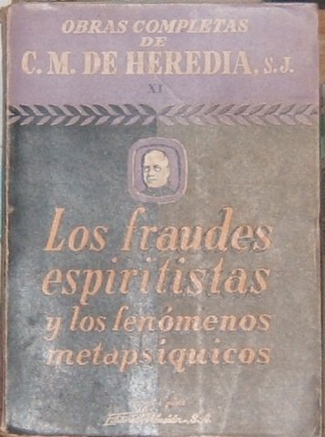HEREDIA, G. M. de Los fraudes espiritistas y los fenómenos metapsíquicos por --., S.J. Herder. Barcelona 1946 Primera edicion . 405 p. 8º (18 cm) Rustica. Abundantes fotogr. Z (Ref.4616) espiritismo parapsicologia fantasmas ectoplasma fotografias