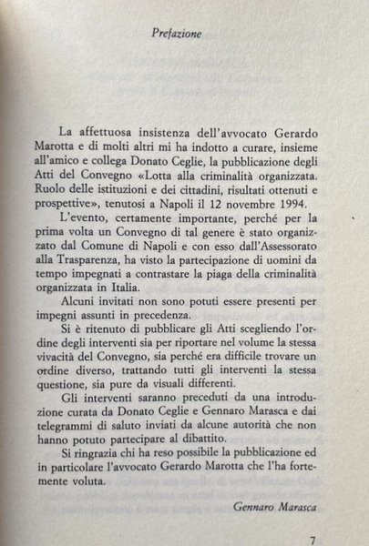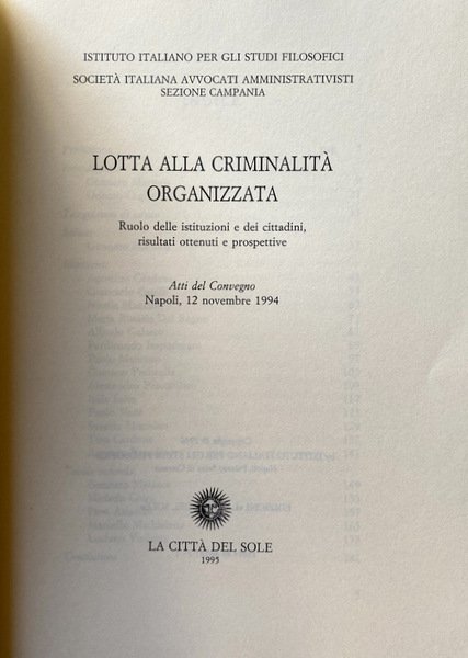 LOTTA ALLA CRIMINALITÀ ORGANIZZATA. RUOLO DELLE ISTITUZIONI E DEI CITTADINI RISULTATI OTTENUTI E PROSPETTIVE. (Atti del Convegno, Napoli, 12 novembre 1994)