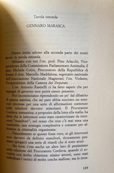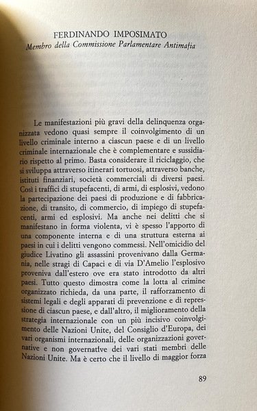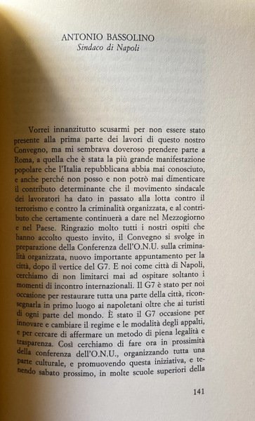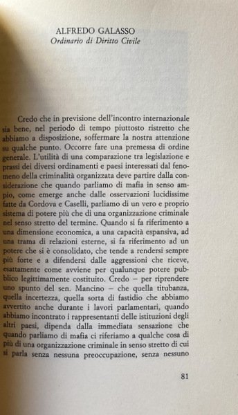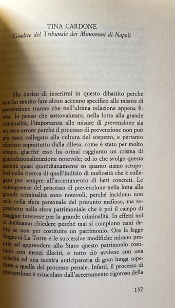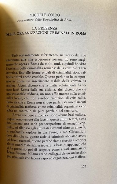 Soggetti: Scienze sociali, Problemi, Delinquenza giovanile, Criminalità organizzata, Reati, Criminologia, Delitti di strada, Politica, Attualità, Camorra, Mafia, Crimine, Magistratura, Giustizia, Leggi, Istituzioni, Legalizzazione, Depenalizzazione, Educazione civica, Cultura, Omertà, Mentalità, Collaboratori, Mafiosi, Famiglie, Riciclaggio, Traffico di stupefacenti, Droga, Racket, Appalti pubblici, Carcere, 41 Bis, Testimoni, Pentiti, Indagini, Sicilia, Campania, Stati Uniti, Cosa Nostra, Cosche mafiose, Camorristi, Impegno civile, Cittadini, Legalità, Connivenze, Omicidi, Diritto penale, Processi, Giudici, Scorta, Protezione, Roma, Capitale, Infiltrazioni, Imprenditori, Denaro sporco, Attentati, Stragi, Falcone, Borsellino, Vertici, Palermo, Anti-Stato, Ndrangheta, Reggio Calabria, Puglia, Italia Meridionale, Convegni, Atti, Tavola Rotonda, Mezzogiorno, Trasparenza, Minorenni, Tribunale, DIA, DDA, Armi, Esplosivi, Commercio, Falsificazione, Capaci, via D'Amelio, Servizi Segreti, Eversione, Banche, Istituti finanziari, Estero, Libri Vintage Fuori catalogo, Saggi, Società, Pubblica Amministrazione, Lotta, Elezioni, Social sciences, Problems, Juvenile delinquency, Organized crime, Crimes, Criminology, Street crimes, Politics, Current affairs, Crime, Judiciary, Justice, Laws, Institutions, Legalization, Decriminalization, Civic education, Culture, Omertà, Mentality, Collaborators, Families, Recycling, Narcotic trafficking, Drugs, Public procurement, Prison, Witnesses, Repent, Investigations, Sicily, United States, Mafia gangs, Camorrists, Civil commitment, Citizens, Legality, Connivences, Murders, Law Criminal, Trials, Judges, Escort, Protection, Rome, Capital, Infiltrations, Entrepreneurs, Dirty money, Attacks, Massacres, Summits, Anti-state, Southern Italy, Conferences, Acts, Roundtable, Mezzogiorno, Transparency, Minors, Court, Weapons, Explosives, Commerce, Forgery, Secret Services, Eversion, Banks, Financial Institutions, Abroad, Out of Print Books, Essays, Society, Public Administration, Fight, Elections