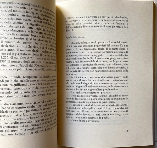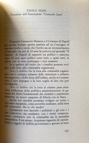 Interventi di: Giancarlo Caselli, Michele Coiro, Agostino Cordova, Pino Arlacchi, Antonio Bassolino, Gennaro Marasca, Nicola Mancino, Alfredo Galasso, Ferdinando Imposimato, Maria Rosaria Del Regno, Paolo Siani, Isaia Sales, Gaetano Pecorella, Poalo Mancuso, Alessandro Pennasillico, Saverio Mannino, Tina Cardone, Marcello Maddalena, Luciano Violante
