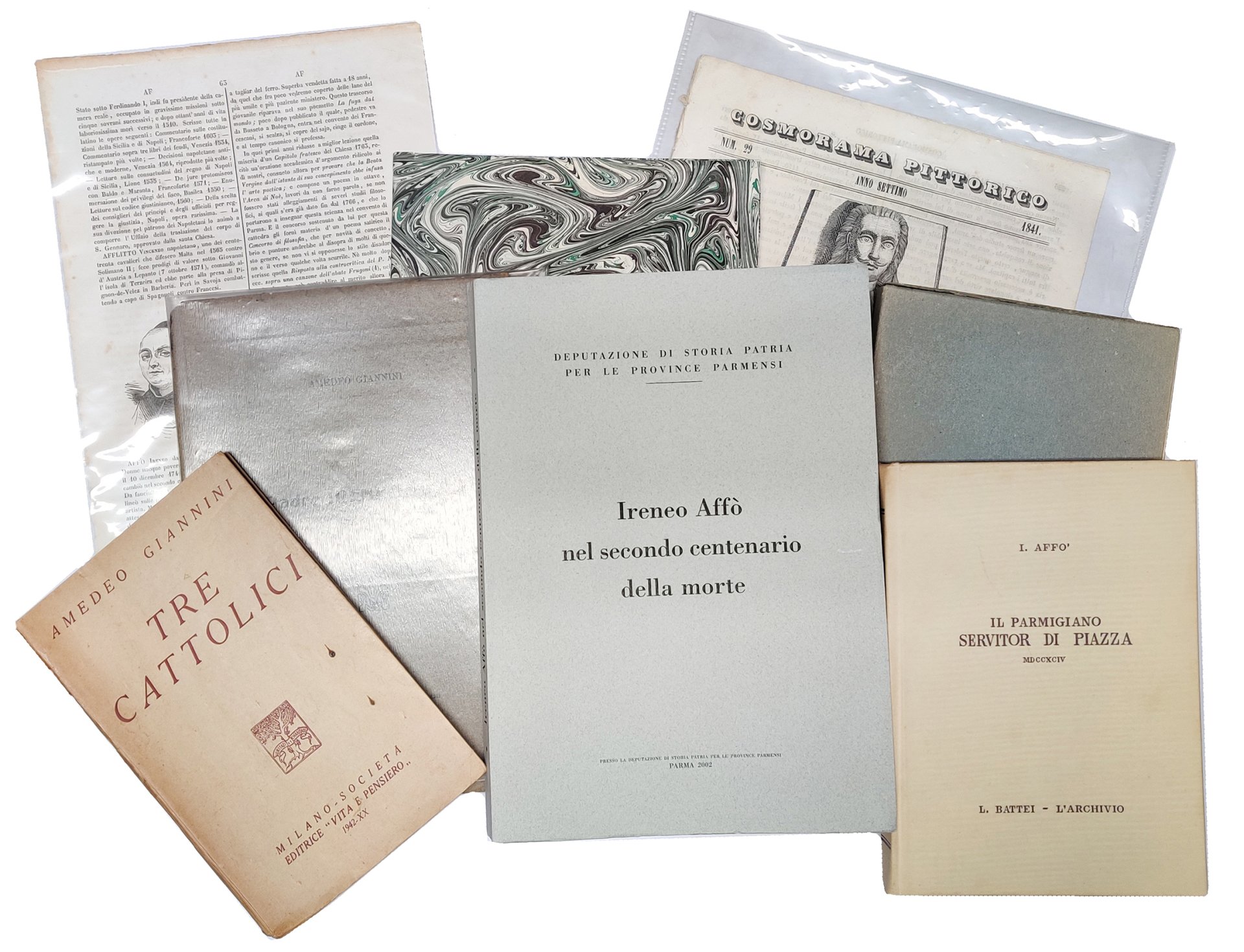 Lottino contenente 8 pubblicazioni riguardanti la vita e le opere del grande storico Ireneo Affò (1741-1797)
