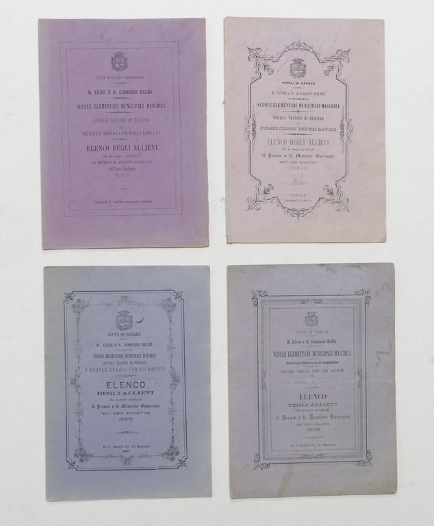 Lotto 4 Elenchi Allievi meritevoli Scuole di Casale Monferrato - 1869 / 1874
