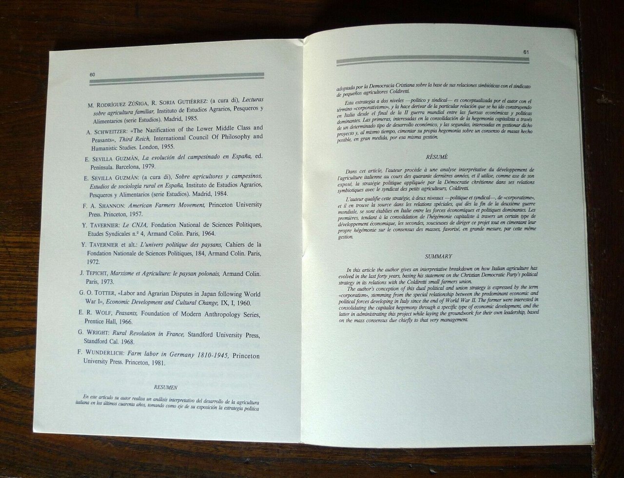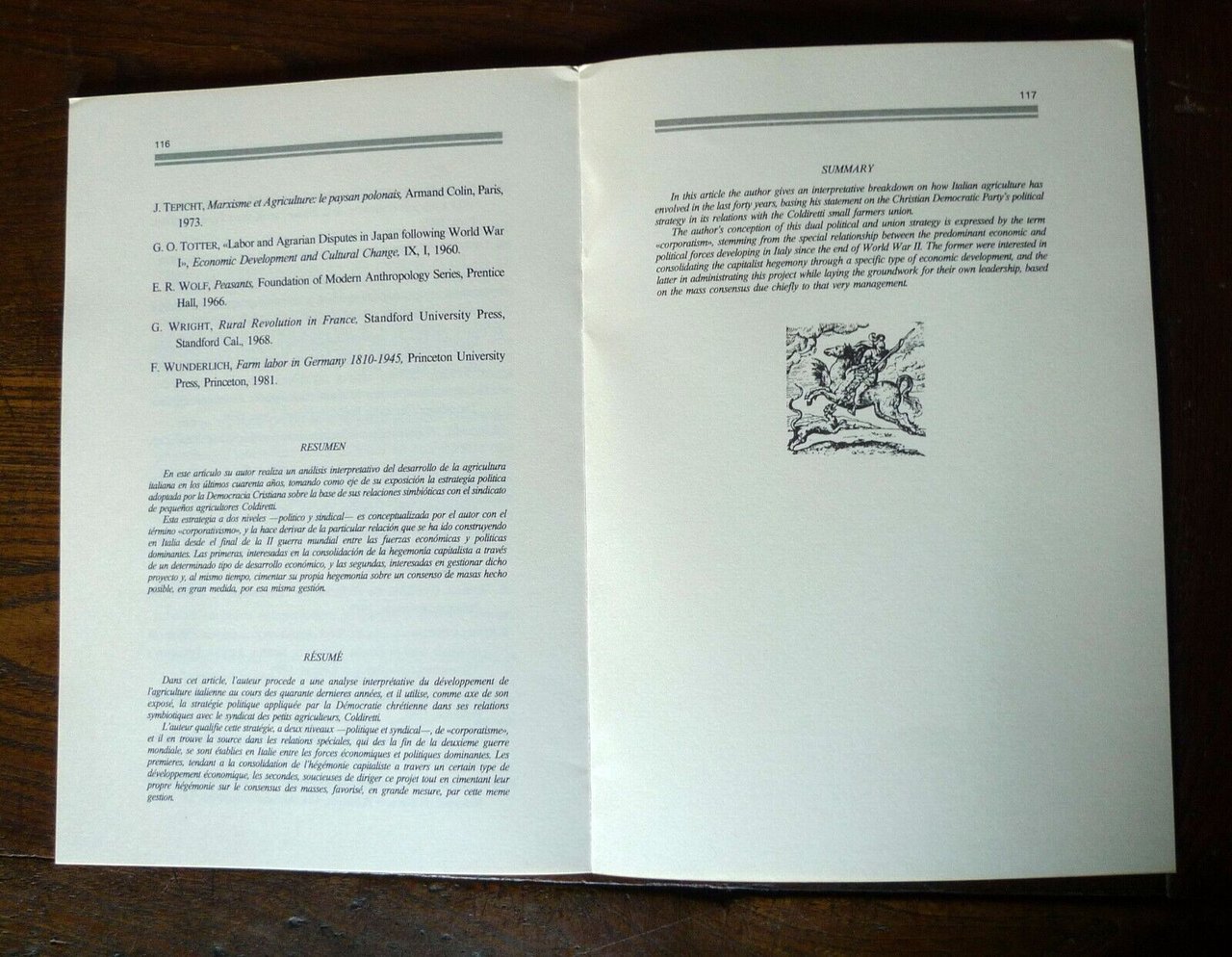 - IL CONFLITTO SENZA AVVENTURE.CONTADINI E STRATEGIA RURALISTANELLA STORIA DELLA COLDIRETTI.Estratto da "Annali" della FondazioneGiangiacomo Feltrinelli 1993,brossura, 24x16,5 cm., pp.491-528