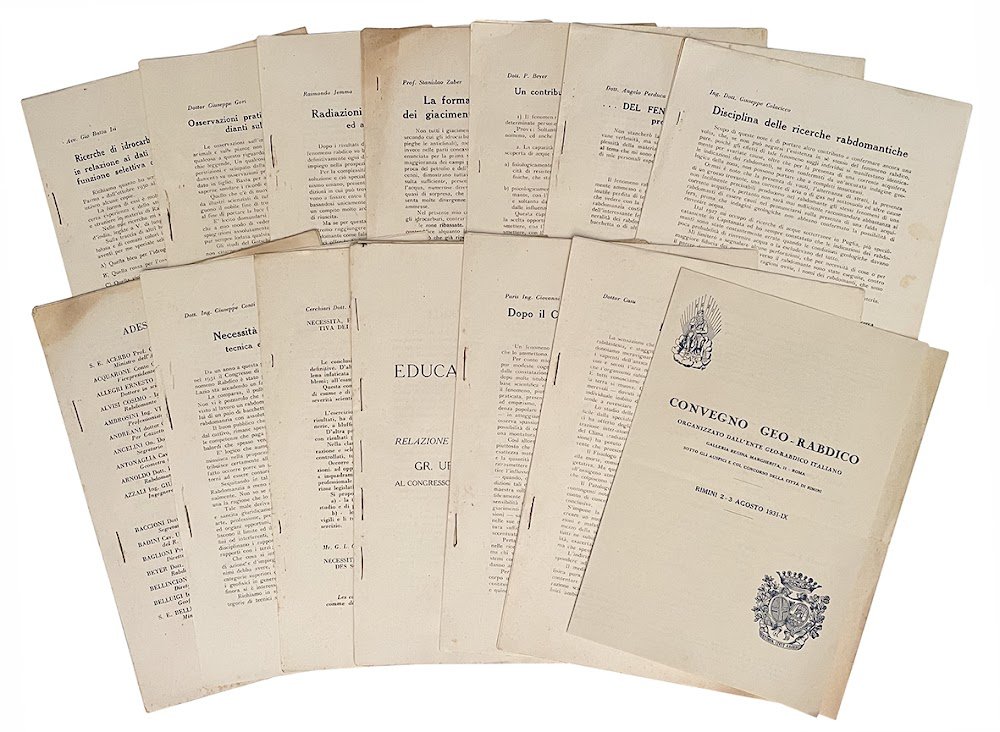 - Convegno Geo-Rabdico organizzato dall'Ente Geo-Rabdico Italiano. Galleria Regina Margherita, 11 - Roma. Sotto gli auspici e col concorso della Città di Rimini. Rimini 2-3 Agosto 1931-IX