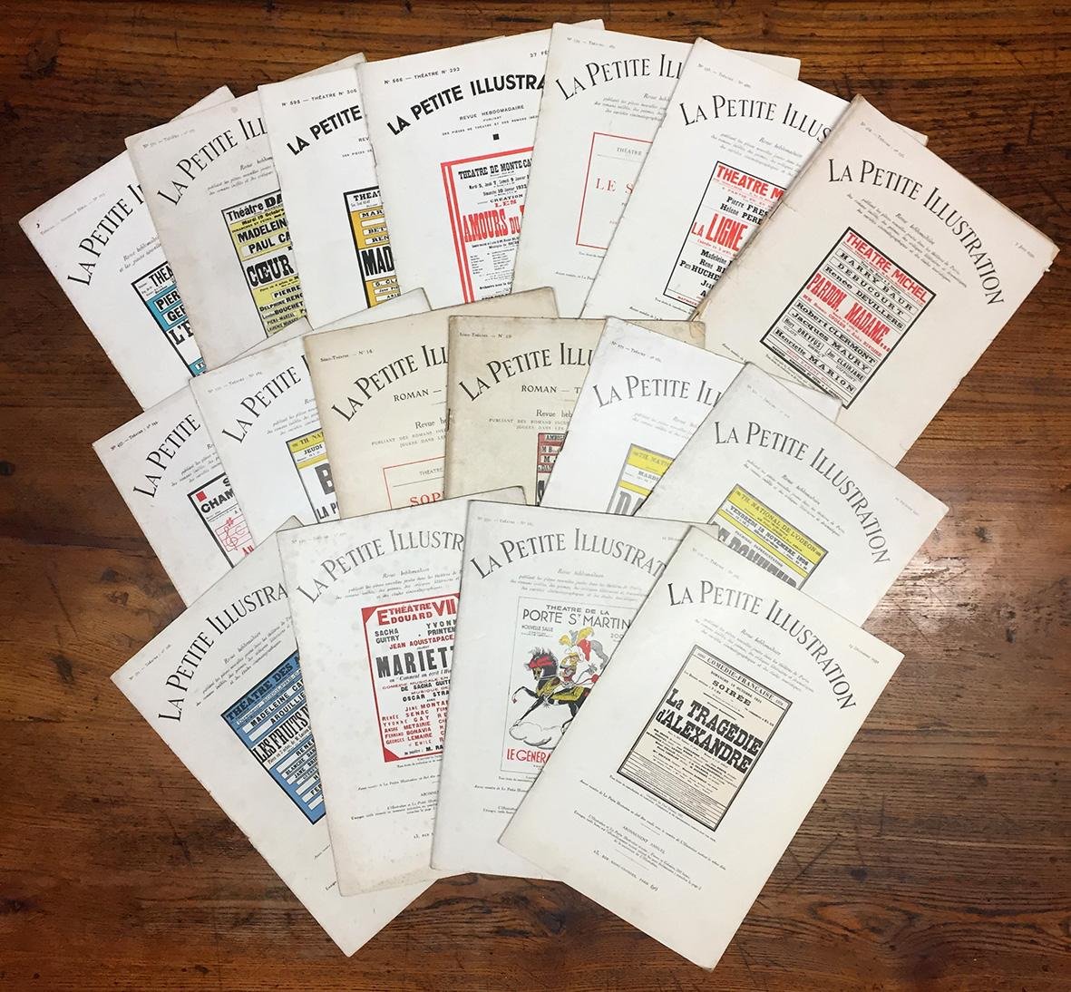 Lotto di 17 numeri de "La Petite Illustration. Revue hebdomadaire", interessante rivista settimanale sulla quale erano pubblicate le più recenti opere teatrali eseguite nei teatri parigini, romanzi inediti e recensioni letterarie e drammatiche.