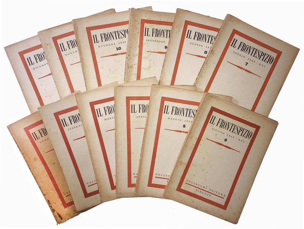 - Annata completa del 1938-XVI, composta da dodici numeri (mm 272x195): pp. 808 (numerazione continua dei diversi fascicoli) con illustrazioni in bianco e nero nel testo e fuori testo. Le ultime pagine di ogni fascicolo, stampate su carta rosa, contengono le pubblicazioni della casa editrice Vallecchi. Carta uniformemente brunita. Brossura editoriale con lievi fioriture e minime mancanze marginali e al dorso. Brunita la copertina del primo fascicolo.