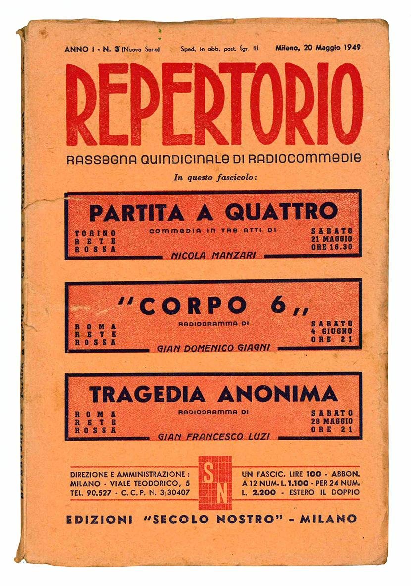 Lotto di otto numeri del periodico "Repertorio. Rassegna quindicinale di radiocommedie". Anno I numeri 3-7 e 11-13.