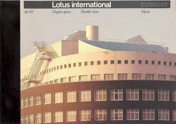 IN 8° CARRE' ( cm.26 X 26,5 ), pp. 215, COPERTINA EDITORIALE ILLUSTRATA A COLORI CON TITOLO. NUMEROSE ILLUSTRAZIONI in b/n/col. NEL TESTO e f.t. ANCHE a pp. EDIFICI E <BR>PROGETTI, IMMAGINI E RIFLESSI SI AVVICENDANO IN QUESTO NUMERO DI LOTUS SU UNA TRAMA DI RICHIAMI E DI RISPECCHIAMENTI. UNA PANORAMICA SULLA PRODUZIONE ARCHITETTONICA CONTEMPORANEA NON PUO' INFATTI IGNORARE LE MOLTEPLICI VALENZE<BR>CHE IL PROGETTO DISPIEGA, SIA SUL PIANO FORMALE FIGURATIVO CHE SU QUELLO<BR>LINGUISTICO. LOTUS INTERNATIONAL, RIVISTA TRIMESTRALE DI ARCHITETTURA n° DOPPIO<BR>48 / 49, 1985 / 4 - 1986 /1. STATO NUOVO. ID 2349