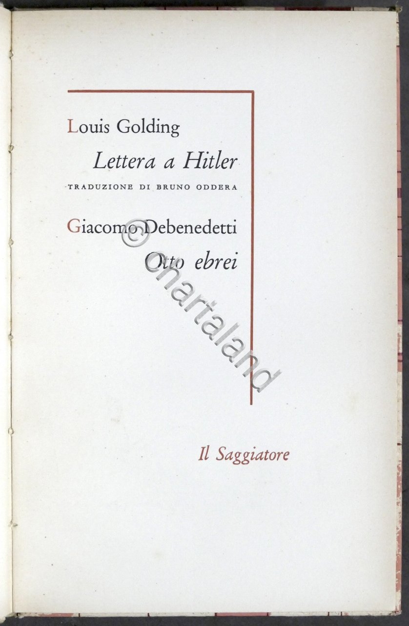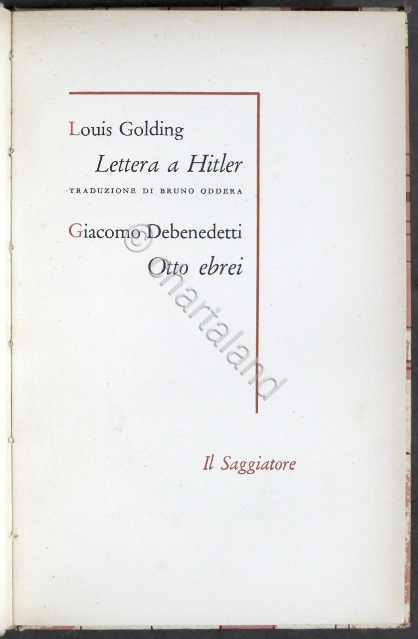 Louis Golding - Lettera a Hitler / Giacomo Debenedetti - Otto Ebrei - 1^ ed. 1961 Pag. 57 Copertina rigida - Testo in italiano. Condizioni molto buone.