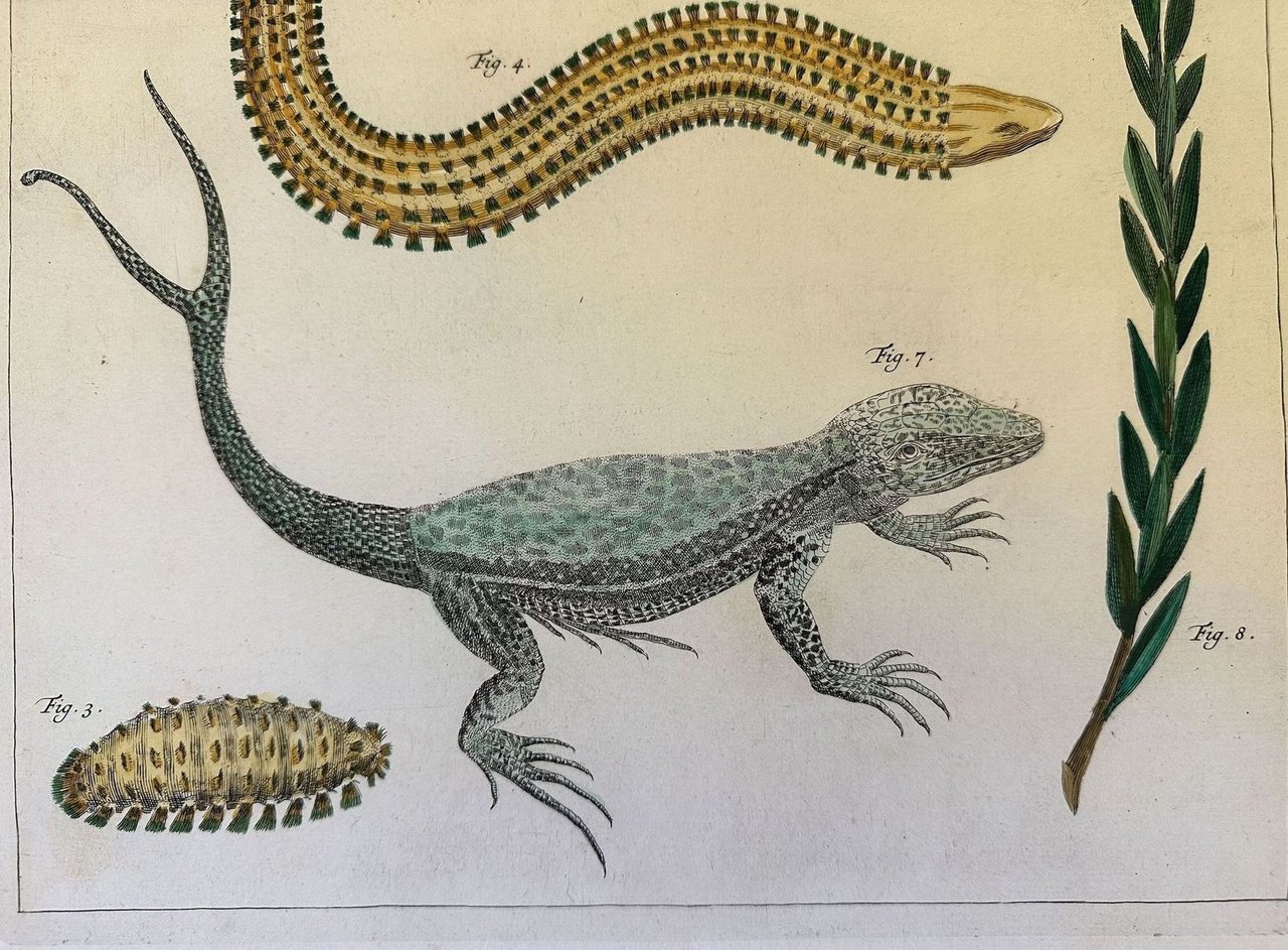 Incisione originale del 1734 di Albertus Seba (1665-1736) farmacista zoologo e collezionista olandese. Seba era il farmacista della Indian Company e durante i suoi viaggi raccolse molti animali inclusi esemplari con deformità fisiche. Tutta la sua collezione venne esposta al “Cabinet de curiositè” che divenne un'attrazione per molte persone, il primo vero esempio di museo. Nel suo “Locupletissimi rerum naturalium thesauri accurate description” descrive e mostra la sua raccolta. ATLANTE: Locupletisismi rerum naturalium thesauri accurate description AUTORE: Albertus Seba (1665-1736) DATA: 1734 TECNICA: incisione su rame COLORE: acquarellatura a mano coeva DIMENSIONI FOGLIO: 49,5x32 cm DIMENSIONI INCISIONE: 43x28 cm CONDIZIONI: Buone condizioni. Rare fioritureOriginal engraving of 1734 by Albertus Seba (1665-1736) dutch pharmacist, zoologist and collector. Seba was the pharmacist of Indian Company and collected many specimens of animals including those with physical dephormities during his travels. All his collection was shown in his house as “Cabinet de curiositè” which was an attraction for many people, the real first example of museum. Also Linneo and Merian took inspiration for their works. In his “Locupletissimi rerum naturalium thesauri accurate description” he describes and shows all his collection. Atlas: Locupletisismi rerum naturalium thesauri accurate description Author: Albertus Seba (1665-1736) Date: 1734 Technique: Copper etching engraving coloured by hand Leaf Dimension: 49,5x32 cm (19.49x12.60 inches) Engraving Dimension: 43x28 cm (16.93x11.02 inches) Conditions: Good conditions. Some foxings.