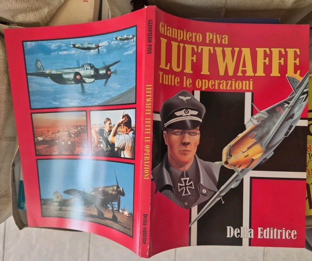 LUFTWAFFE Tutte le operazioni Di Gianpiero Piva. Delta editrice, 2001 . 128 pagine, ricchissimo di foto in bianco e nero e a colori nel testo. Copertina editoriale in brossura. Stato di conservazione: quasi nuovo