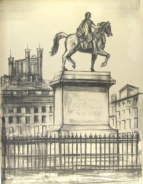 1955 Pierre de Tartas, Paris, 1955. Grand in/4 (33 x 26 cm) en feuilles sous chemise et étui cartonné, couverture rempliée et illustrée, 16 lithographies originale de P. Théron dont la couverture, frontispice, 10 à pleine-page, 2 à double-page et 2 en-têtes, 140 p. Tiré à 160 ex., notre exemplaire numéroté sur grand vélin (n°31) avec suite des lithographies avec remarques. Mondo 5301. Pierre Théron (1918 - 2001) artiste peintre, sculpteur, mosaïste, fresquiste, auteur nombreux cartons de tapisseries d'Aubusson français. Né à Nérac (Lot et Garonne) Pierre Théron fit ses études à l’école des Beaux-Arts de Bordeaux. En 1942, reçu premier en dessin au concours d’admission, il obtint une bourse de l’Ecole Nationale Supérieure des Beaux-Arts de Paris, et fréquenta les ateliers d’André Lhote et Jean Dupas. Puis il dut se réfugier dans le Tarn pour éviter le service du travail obligatoire en Allemagne. De retour à Paris dès la Libération, il participa dès 1945 à la vie artistique d’avant-garde de Saint-Germain-des-Prés, et se lia d’amitié avec Boris Vian, le chorégraphe Roland Petit ou les Frères Jacques. Au cours d’un voyage d’étude à Londres en 1947, il fit la connaissance de Marcel Aymé qui restera un ami fidèle et un admirateur de sa peinture. Dès 1945, l’Etat acheta deux toiles de Théron au Salon des Tuileries, et en 1950, l’artiste reçu sa première commande de décoration murale à Bordeaux. Il vécut de ses expositions et de commandes d’Etat abondantes et variées (fresques, mosaïques, vitraux, sculptures, nombreux cartons de tapisseries d’Aubusson). En 1957, il reçut, dans la catégorie Dessin, le Grand Prix des Beaux-Arts de la ville de Paris.