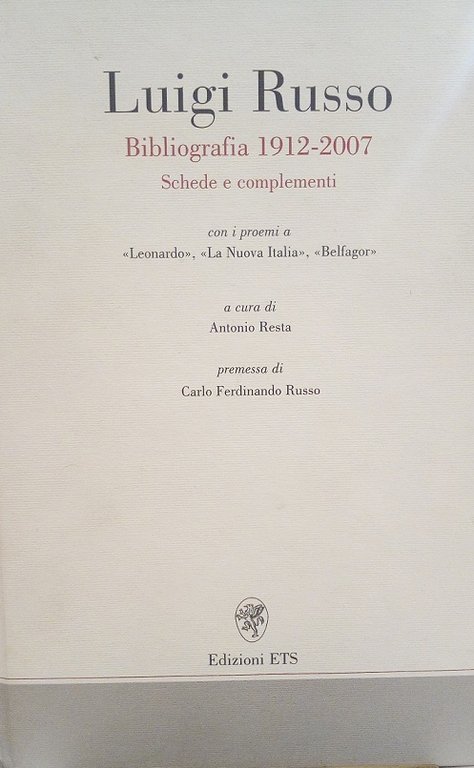 LUIGI RUSSO - BIBLIOGRAFIA 1912-2007, SCHEDE E COMPLEMENTI - CON I PROEMI A "LEONARDO", "LA NUOVA ITALIA", "BELFAGOR"