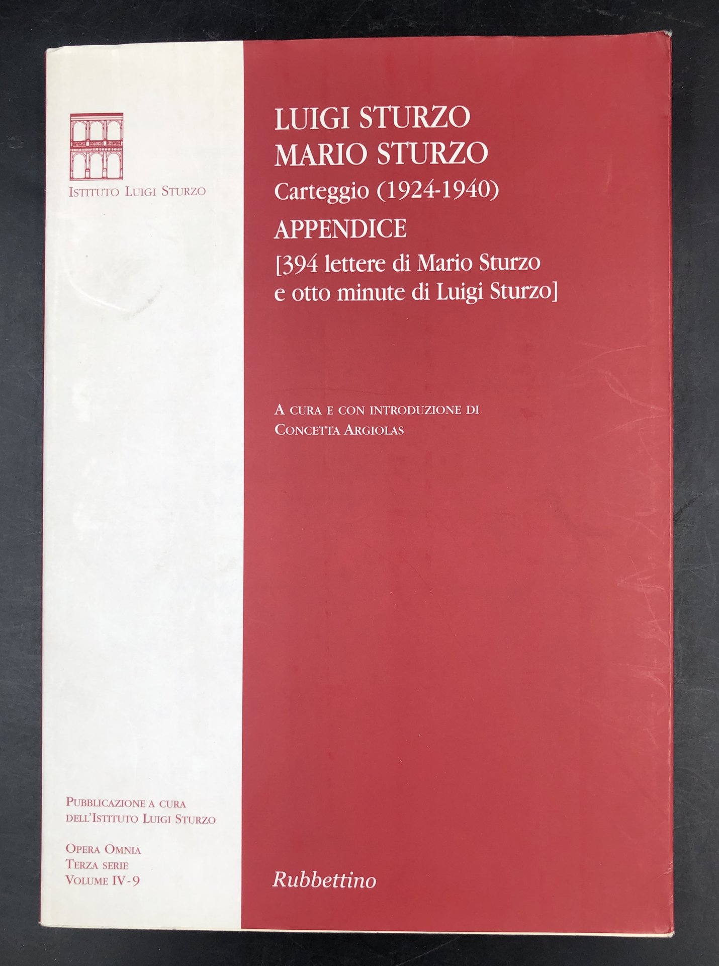 Luigi STURZO, Mario STURZO. CARTEGGIO (1924-1940). Appendice (394 LETTERE di Mario Sturzo e otto minute di Luigi Sturzo). A cura e con introduzione di Concetta ARGIOLAS.
