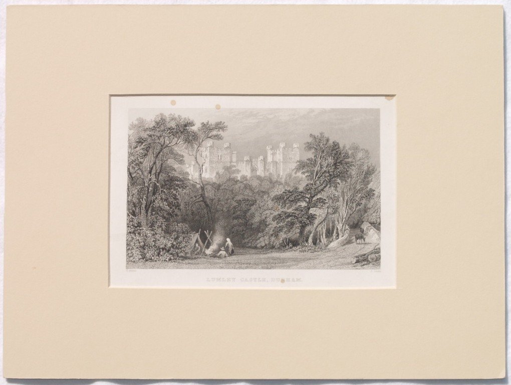 Splendida incisione su acciaio del 1832, che mostra una veduta del Castello di Lumley, Durham, Inghilterra. L'incisione è montata in un elegante passepartout INCISIONE: Incisione su acciaio AUTORE: J. Sands DIMENSIONI PASSEPARTOUT: cm 30x22,5 DIMENSIONI INCISIONE: cm 17x11,5 EPOCA: 1832 CONDIZIONI: buone; fioriture; usure nella parte posteriore del passepartout. Faboulous steel engraving of 1832 by J. Sands, representing the Nottingham Castle. It is in an elegant passe-partout. ENGRAVING: steel engraving AUTHOR: J. Sands PASSE-PARTOUT DIMENSION: cm 30x22,5 ENGRAVING DIMENSION: cm 17x11,5 DATE: 1832
