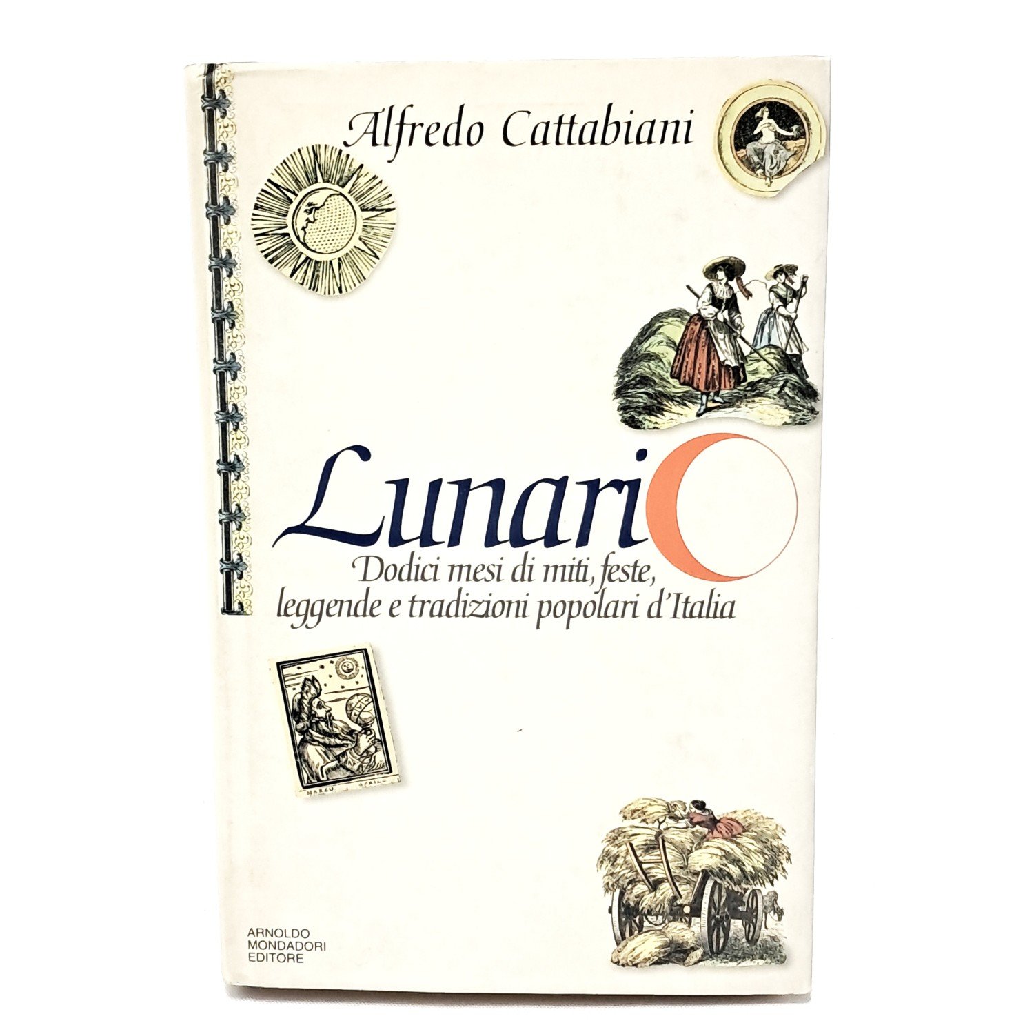 PRIMA EDIZIONE. Viaggio nelle tradizioni popolari italiane. Con illustrazioni di Sigrfido Bartolini. In questo insolito libro, ispirato agli antichi almanacchi che riportavano le tavole delle lunazioni e ricordavano feste e fiere, Alfredo Cattabiani ci guida in un affascinante viaggio nelle nostre tradizioni popolari: usanze, devozioni, cerimonie, leggende, proverbi, che costituiscono un ricchissimo patrimonio culturale alimentato da secoli di vita contadina e da una profonda fede religiosa, non sempre ortodossa. Lunario è suddiviso in dodici capitoli, ciascuno dedicato a un mese, in cui l’autore descrive le più interessanti e significative ricorrenze, racconta aneddoti, illustra simboli astrologici. Un insostituibile e piacevolissimo repertorio, da leggere dalla prima all’ultima pagina, da consultare mese per mese, da tenere in valigia o da conservare in biblioteca, pronto a rispondere a ogni curiosità su credenze, miti, santi, feste e simbologie di ogni tipo. Cartonato con sovraccoperta illustrata. Pp. 456. Buone condizioni.