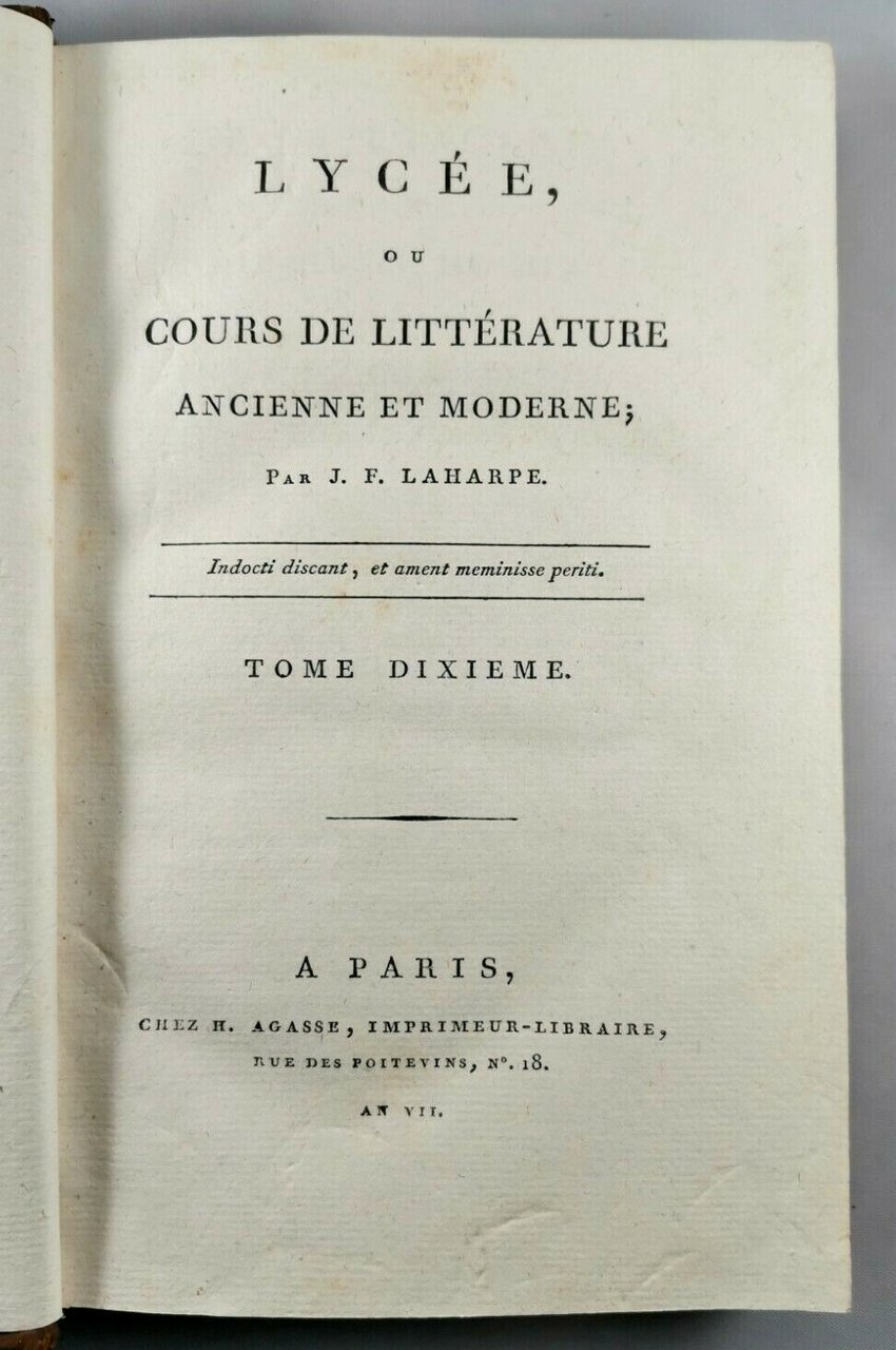 LYCEE OU COURS DE LITTERATURE ANCIENNE ET MODERNE tomo 10 di La Harpe 1799 libro