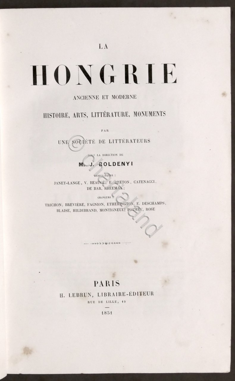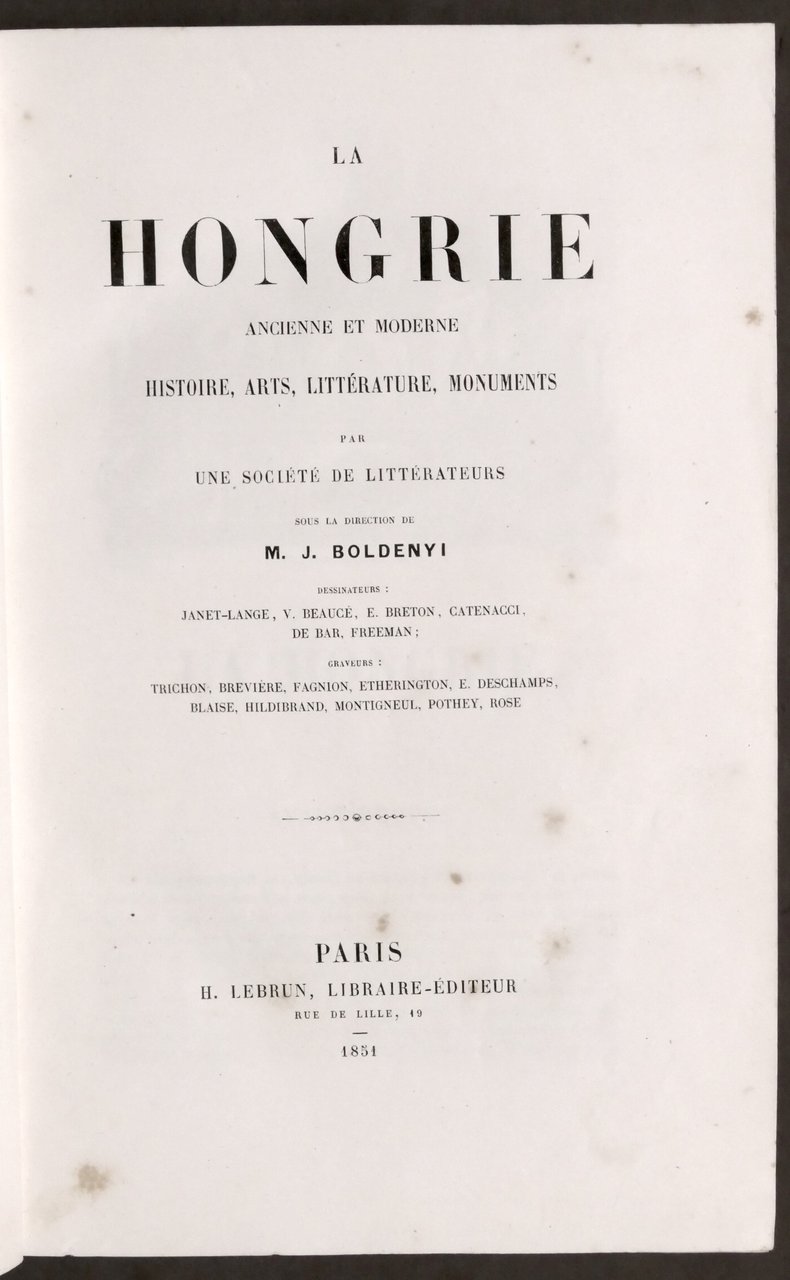 La Hongrie ancienne et moderne - Histoire, arts, littérature, monuments par une Société de littérateurs sous la direction de M. J. Boldenyi - 1^ ed. 1851 Contiene: La Hongrie - Variétés Pag. 239, 159; con illustrazioni nel testo e fuori testo. Copertina rigida - Testo in francese. Condizioni molto buone.