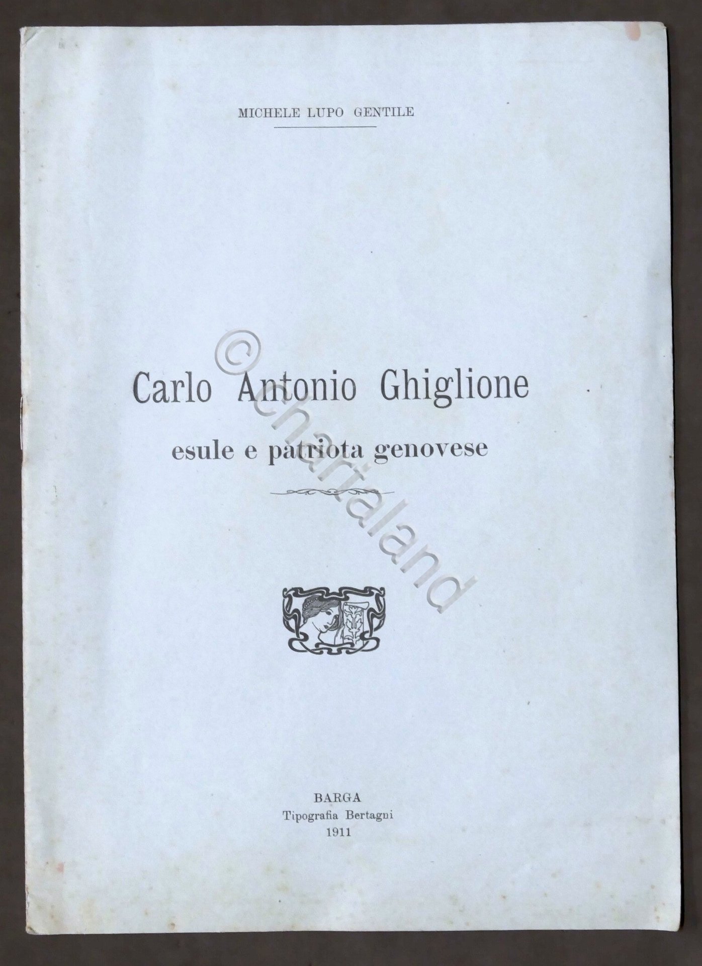 M. Lupo Gentile - Carlo Antonio Ghiglione esule e patriota genovese - 1^ ed. 1911 Pag. 15 Copertina morbida - Testo in italiano. Condizioni molto buone.