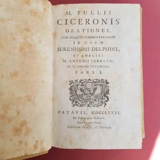 M. Tullii Ciceronis Orationes, cum delectu commenriorum in usum serenissimi Delphini, et analysi M. Antonii Ferratii, in 4. partes distribuitae