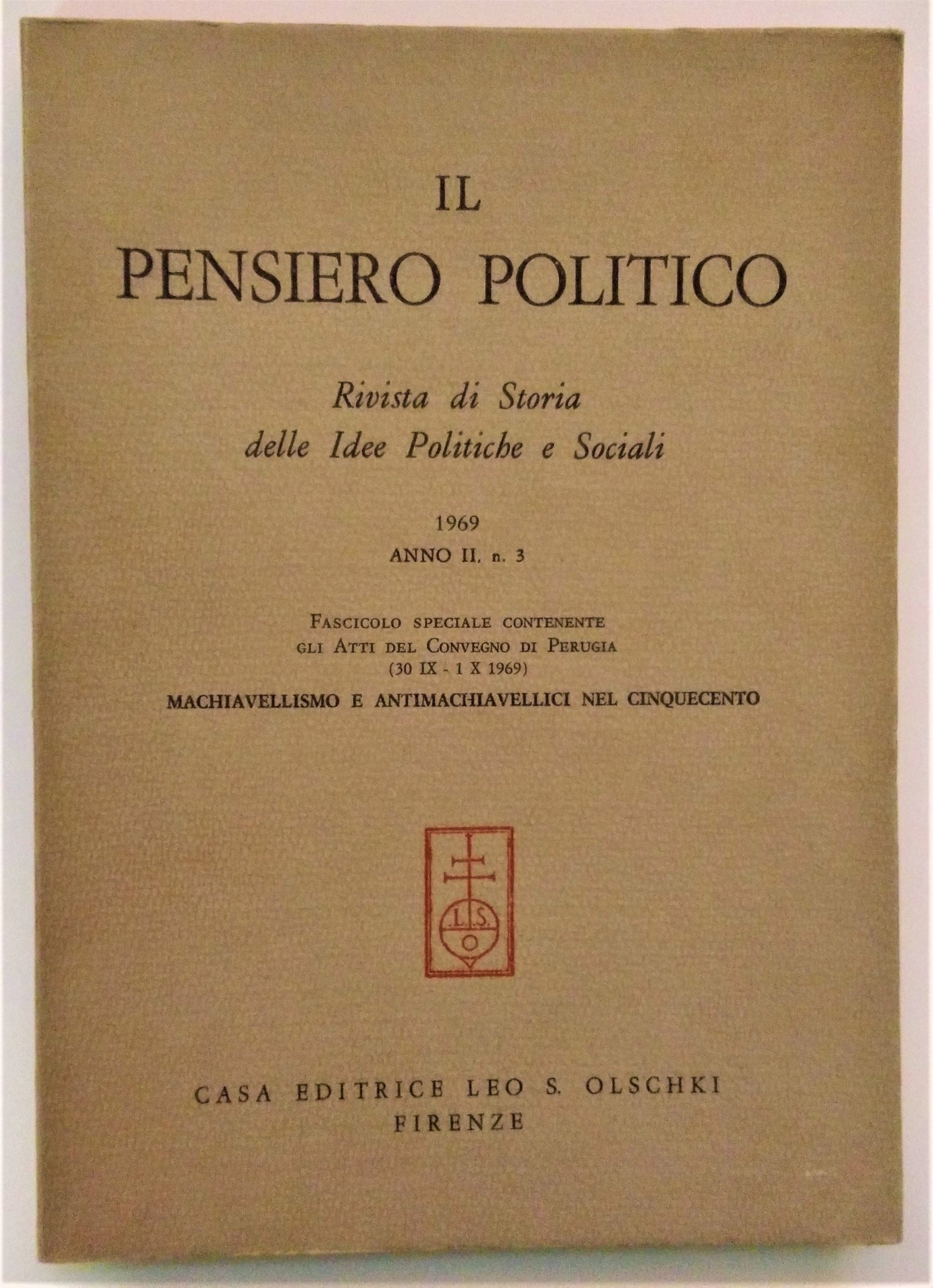 Machiavellismo e antimachiavellici nel cinquecento. Atti del convegno di Perugia ( 30 IX - 1 X 1969 ). Fascicolo speciale de Il Pensiero Politico, Rivista delle Idee Politiche e Sociali. 1969, Anno II. n. 3.