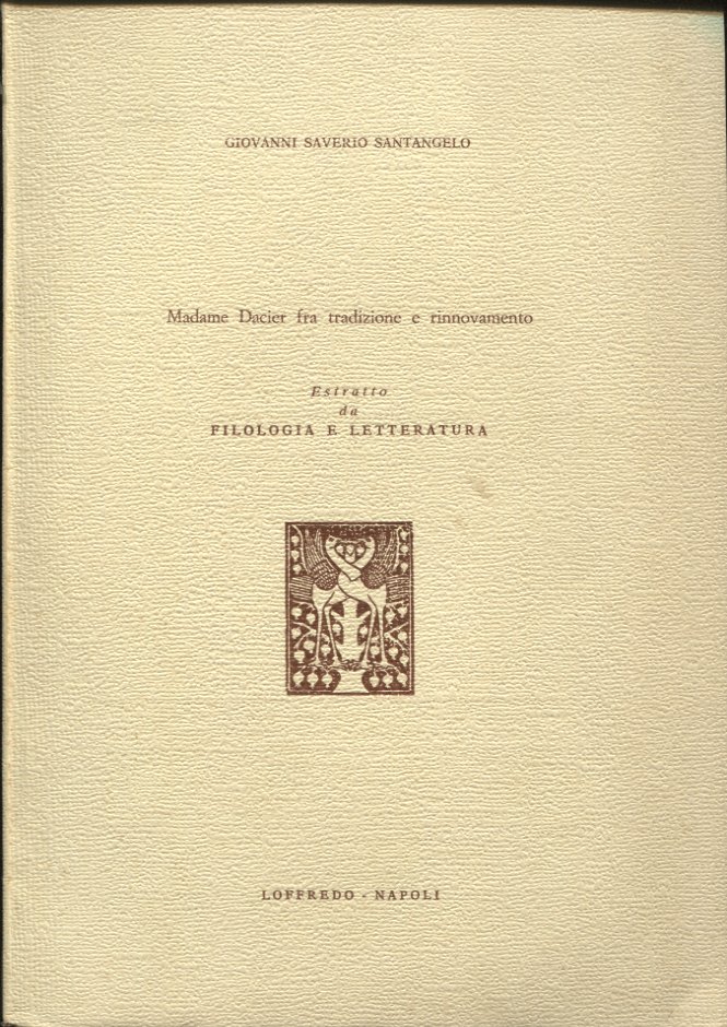 Madame Dacier fra tradizione e rinnovamento. Estratto da: Filologia e letteratura, 17 (1971), fasc. 2, n. 66. | Libri antichi e moderni | Santangelo Giovanni Saverio, ,Santangelo Giovanni Saverio