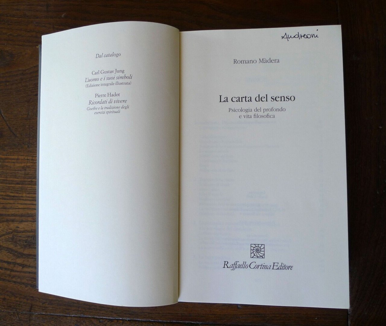 Madera,LA CARTA DEL SENSO.Psicologia del profondo e vita filosofica,2012 Cortina