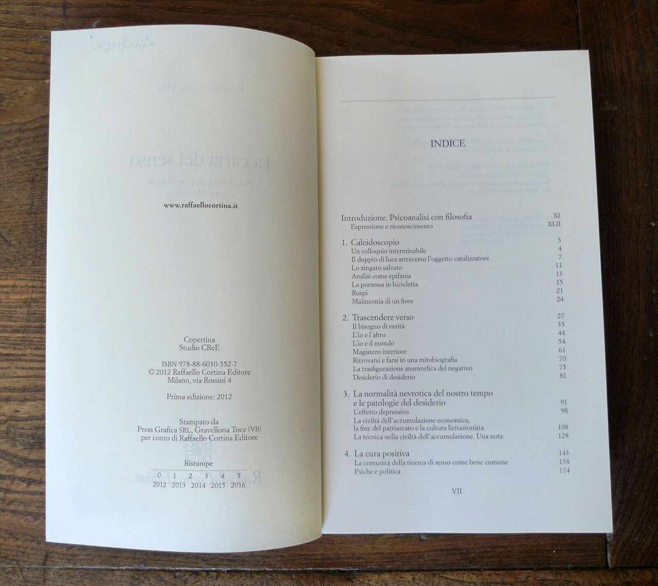 Romano Màdera,LA CARTA DEL SENSO.Psicologia del profondo e vita filosofica.Raffaello Cortina Editore, Milano 2012,prima edizione,brossura, 22,5x14 cm., pp.LVII-342,collana SAGGI,ISBN: 978-88-6030-552-7,peso: g.650cod.9263CONDIZIONI DEL LIBRO: ottime,firma di appartenenza al frontespizio,per il resto come nuovo