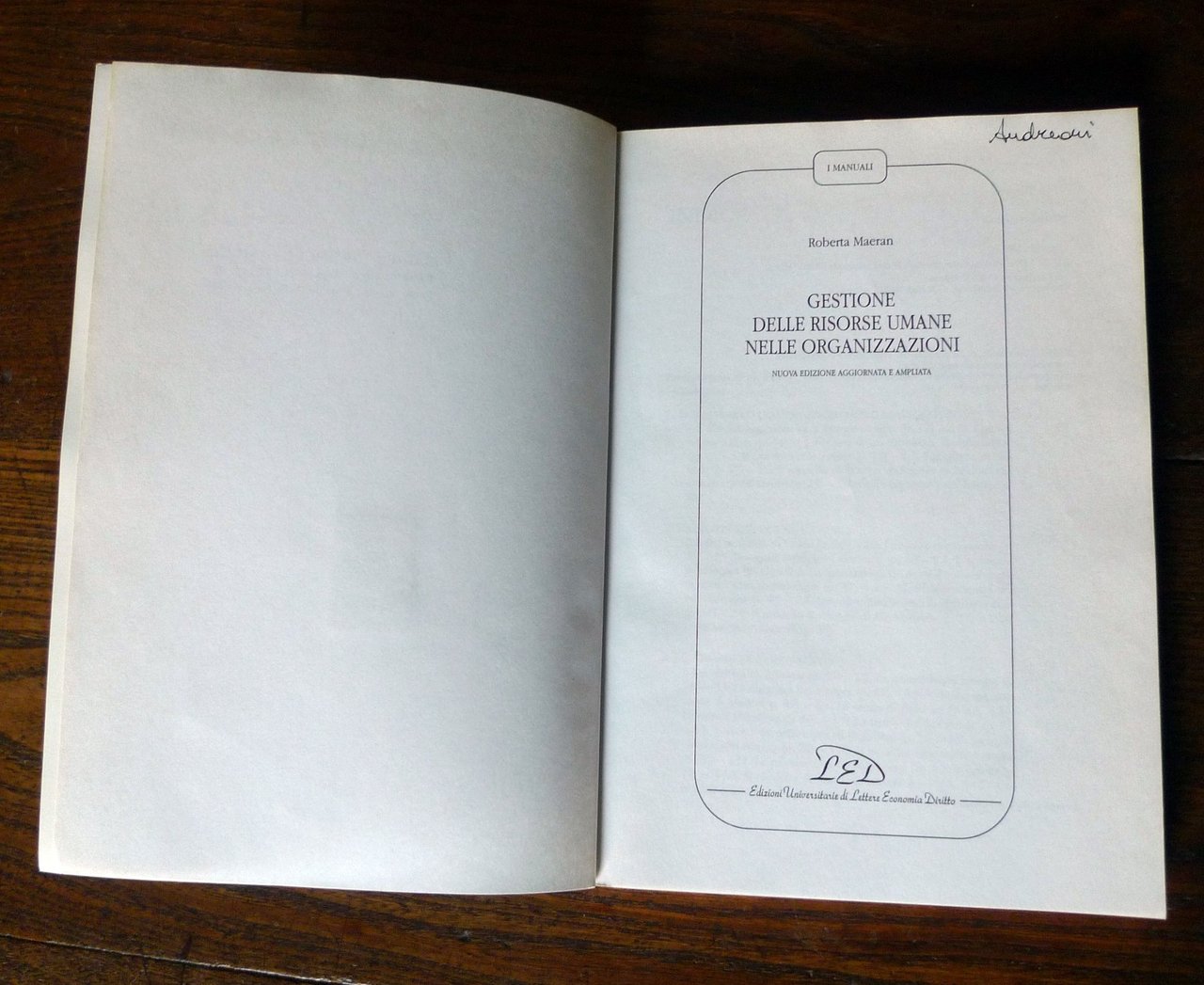 Roberta Maeran,GESTIONE DELLE RISORSE UMANENELLE ORGANIZZAZIONI.LED - Edizioni Universitarie di Lettere Economia Diritto, Milano 2003,nuova edizione aggiornata e ampliata,brossura, 21x15 cm., pp.194,collana MANUALI,ISBN: 88-7916-200-4,peso: g.350cod.9846CONDIZIONI DEL LIBRO: ottime,timbro "SAGGIO CAMPIONE GRATUITO"alla prima pagina,firma al frontespizio