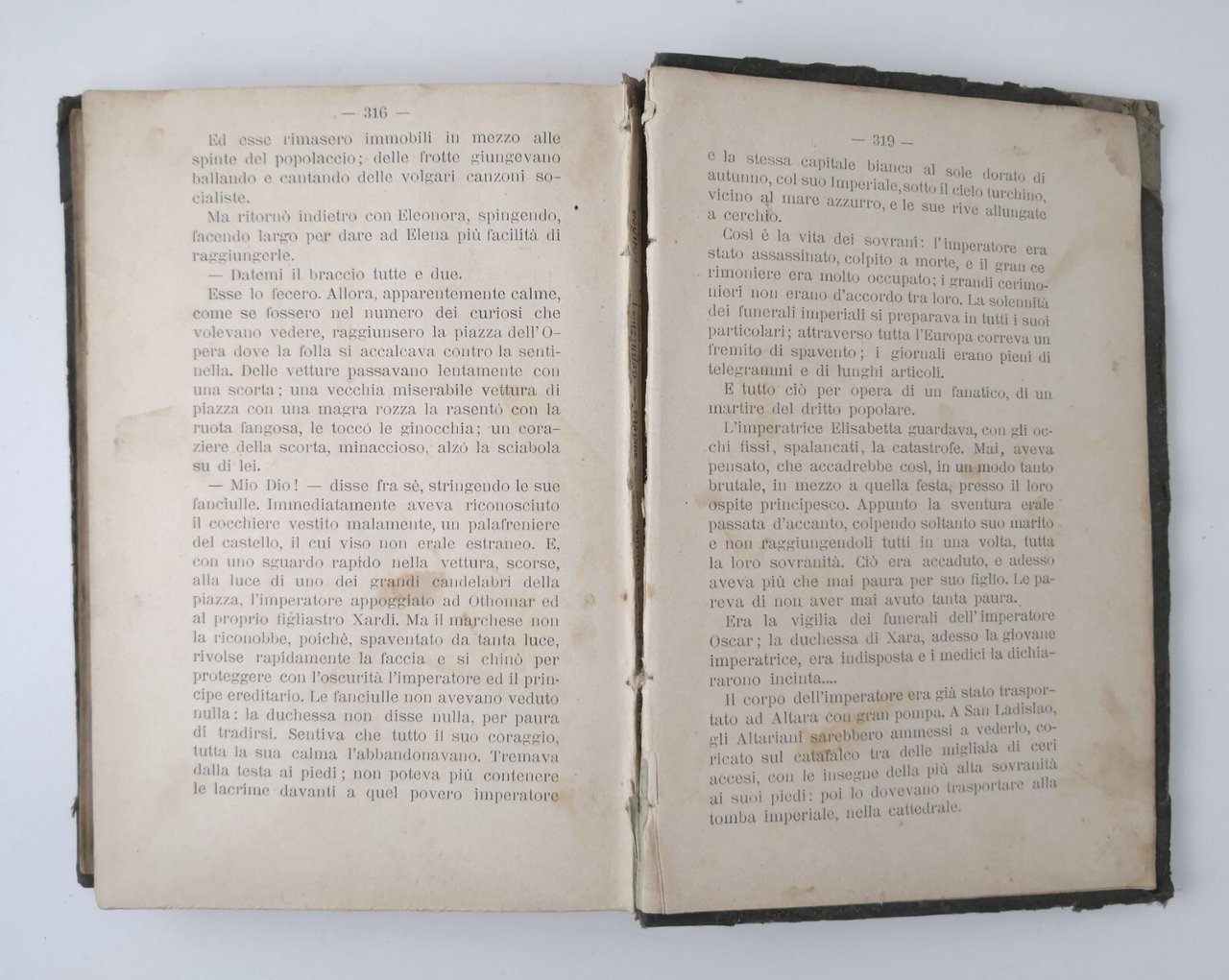 XII + 326 pagine. copertina non editoriale in mezza tela. stato di conservazione: buono (pagine ingiallite, copertina sciupata con spellature ai piatti, nastro adesivo alle cerniere interne, legatura un po' allentata, fioriture e altre piccole macchie)Libro antico romanzo
