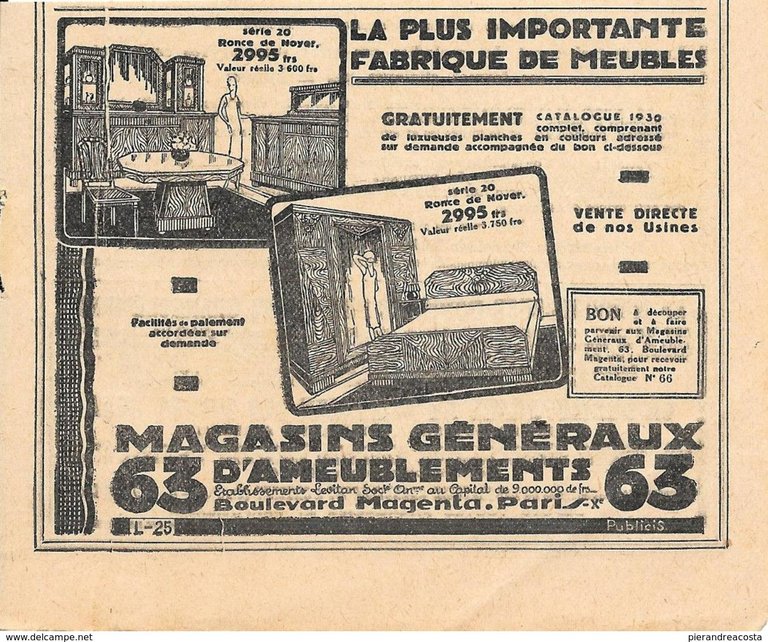Magasins generaux d'ameublements, Paris. Pubblicita 1930