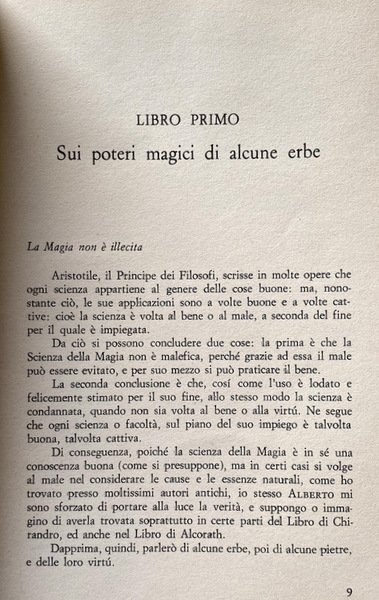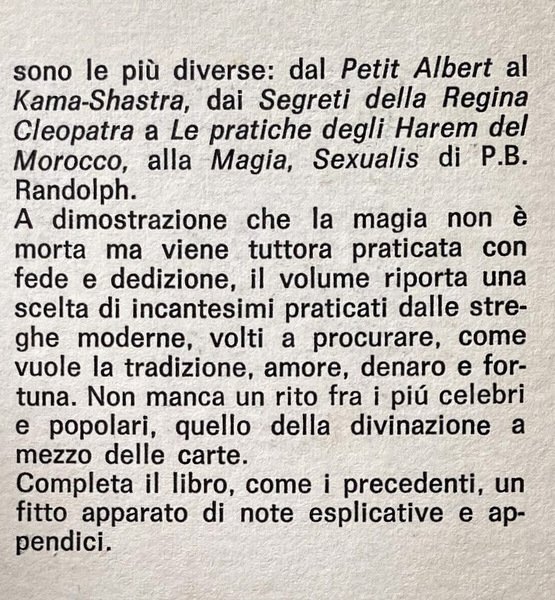 Soggetti: Astrologia, Esoterismo, Misticismo, Magia, Formule magiche, Alchimia, Esoterismo, Premonizioni, Maghi, Magie, Filtri d'amore, Cartomanzia, Carte, Trucchi, Misteri, Segreti, Sessualità, Piacere, Posizioni, Manuali, Ricette, Pratica, Formule magiche, Amuleti, Portafortuna, Futurologia, Predizione, Futuro, Karma, Destino, Filosofia, Religioni, Filosofie orientali, Riti, Rituali, Simbolismo, Libri Vintage Fuori catalogo, Cartomanti, Fede, Occultismo, Credenze, Tradizioni culturali, Folklore, Cultura popolare, Guaritori, Guarigioni, Cosmologia, Astri, Segni zodiacali, Orge, Ermetismo, Pensiero ermetico, Collezionismo, Bibliografia, Classici, Letteratura, Esorcismo, Grand Grimoire, Grimorium Verum, Grimorio, Potenza, Diavolo, Pentacoli, Evocazioni, Incantesimi, Numerologia, Stelle, Comete, Costellazioni astrali, Nascita, Tarocchi, Fatture, Fattucchiere, Streghe, Numeri, Luna piena, Sole, Rinascimento, Cornelio Agrippa, Alberto Magno, Trattati, Forze universali, Magia bianca, Spiriti, Demoni, Dottrina magica, De Occulta Philosophia, Incantesimi, Bassa magia, Julius Evola, Fonti, Kama Shatra, Raud-al-Atir, Harem, Morocco, Inni, Pan, Erbe, Poteri magici, Alcorath, Chirandro, Botanica, Scienza, Piante magiche, Salvia, Verbena, Rosa canina, Ortica, Pervinca, Giglio, Menta, Sedano, Cardo, Calendula Officinalis, Randolph, Sexualis, Denaro, Fortuna, Regina Cleopatra, Petit Albert, Sortilegi, Specchi, Pianeti, Pietre, Animali, Piccolo Alberto, Egiziani, Egizi, Amicizia, Viaggi, Matrimonio, Tradimenti, Affari, Morte, Eredità, Salute, Mercurio, Venere, Giove, Gemelli, Vergine, Bilancia, Marte, Ascendente, Casa, Case, Trigono, Candele, Anello, Orgasmo, Galeno, Desiderio, Bevande, Faustus junior, Negromanti, Divinazione, Faust, Astrology, Esotericism, Mysticism, Magic formulas, Alchemy, Esotericism, Premonitions, Magicians, Spells, Love filters, Fortune telling, Cards, Tricks, Mysteries, Secrets, Sexuality, Pleasure, Positions, Manuals, Recipes, Practice, Magic formulas, Amulets, Lucky charms, Futurology, Prediction, Future, Destiny, Philosophy, Religions, Oriental philosophies, Rites, Rituals, Symbolism, Out of print books, Fortune tellers, Faith, Occultism, Beliefs, Cultural traditions, Popular culture, Healers, Healings, Cosmology, Stars, Zodiac signs, Orgies, Hermetic thinking, Collectibles, Bibliography, Classics, Literature, Exorcism, Power, Devil, Pentacles, Evocations, Spells, Numerology, Stars, Comets, Astral constellations, Birth, Tarot, Invoices, Sorcerer, Witches, Numbers, Full moon, Sun, Renaissance, Treatises, Universal forces, White magic, Spirits, Demons, Magical doctrine, Spells, Low magic, Sources, Hymns, Herbs, Magical powers, Botany, Magic plants, Sage, Rosehip, Nettle, Periwinkle, Lily, Mint, Celery, Thistle, Money, Luck, Queen, Spells, Mirrors, Planets, Stones, Animals, Little Albert, Egyptians, Egyptians, Friendship, Travel, Marriage, Betrayals, Business, Death, Inheritance, Health, Mercury, Venus, Jupiter, Gemini, Virgo, Libra, Mars, Ascendant, Houses, Trine, Candles, Ring, Orgasm, Galen, Desire, Drinks, Necromancers, Divination