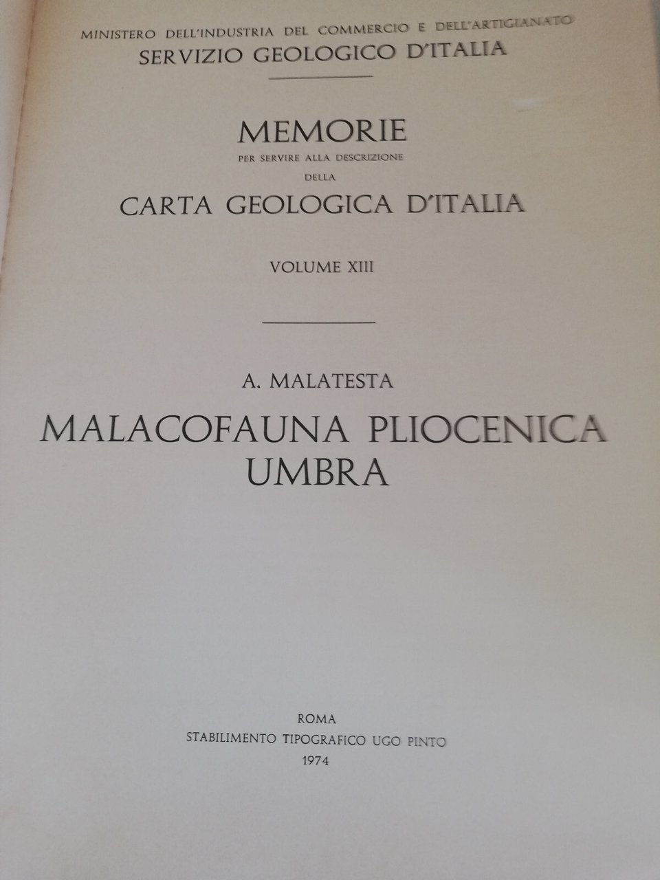 Malacofauna pliocenica umbra, A. Malatesta, 1974, Ugo Pinto | Libri antichi e moderni |