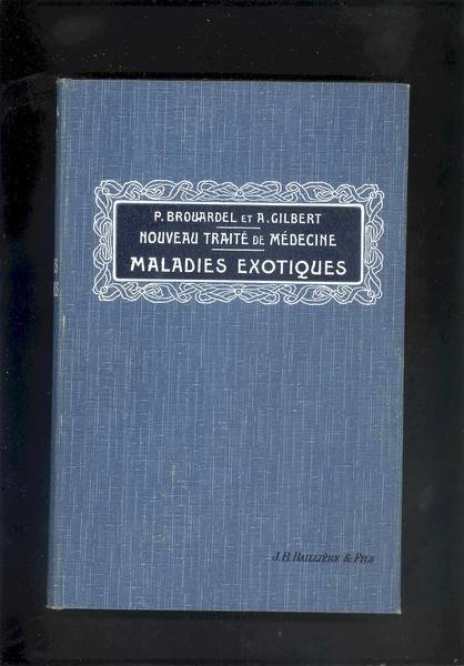 IN 8°, pp.439, COPERTINA EDITORIALE CARTONATA RIGIDA CON TITOLO A RILIEVO ENTRO CORNICE SU FONDO BLEAU, CON 28 FIGURE in b/n. INTERCALATE NEL TESTO.<BR>MALADIES EXOTIQUES, E' IL VI VOLUME DE LE NOUVEAU TRAITE DE MEDICINE ET DE THERAPEUTIQUE SOTTO LA DIREZIONE DI : P. BROUARDEL e A. GILBERT. NELLE ULTIME<BR>OTTO CARTE, PUBBLICITA' DELLA BIBLIOTECA DELLO STUDENTE. OTTIMA CONSERVAZIONE<BR> id 1804.